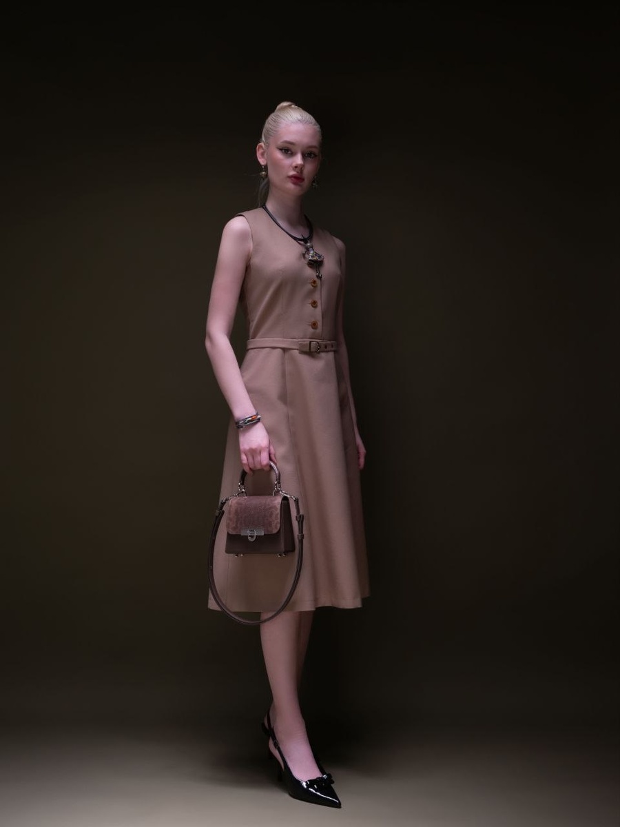 EGM 3048 Женская мини сумка — Изготовленную в России сумочку из натуральной кожи, можно носить в руке, так и через плечо с помощью съемного ремня. EGM 1010 платье средней длинны.