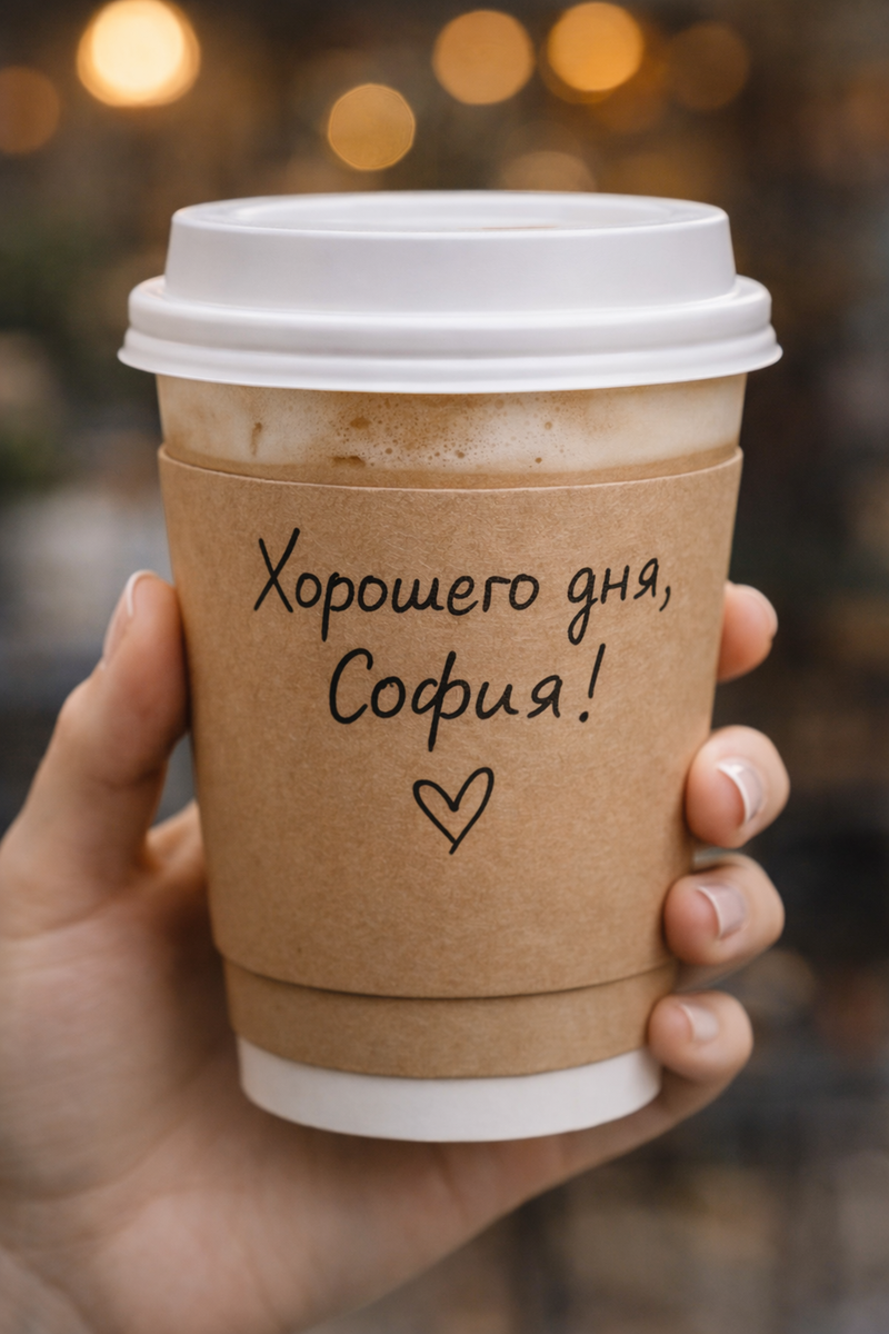 Девушка в светлом тренче, с гладкими волосами, как будто их полировали в салоне «для богинь», и с кокосовым латте в стаканчике, на котором было написано: «Хорошего дня, София!» — сердечком.