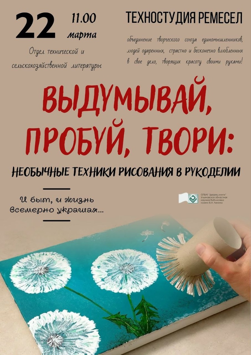 Во Дворце книги ульяновцам расскажут о необычных техниках рисования и рукоделии