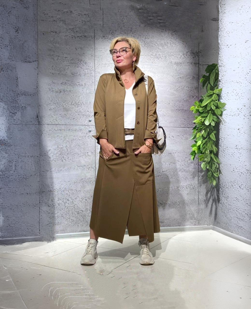 С приходом теплых дней хочется сбросить тяжелые зимние наряды и облачиться во что-то легкое, яркое и стильное. Для женщин 50+ это прекрасная возможность продемонстрировать свой безупречный вкус, чувство стиля и умение сочетать комфорт с элегантностью. Подобрала 10 практичных и красивых образов, которые помогут вам выглядеть модно и наслаждаться каждым весенним днем. Юбочный костюм будет выглядеть свежо и непринужденно в сочетании с белыми кроссовками и сумкой кросс-боди. Такой ансамбль идеально подходит для прогулок и встреч с друзьями. Total look в цвете бургунди – смело и очень стильно. Широкие брюки обеспечивают комфорт, а серый лонгслив разбавляет монохром, добавляя мягкости. Весенняя куртка ботинки и сумка в тон создают завершенный и гармоничный образ. Широкие брюки обеспечивают максимальный комфорт, а куртка-бомбер придает образу динамичности и молодежности. Белые кеды и вместительная сумка делает этот сет практичным для повседневных дел. Монохром в бежевом выглядит стильно