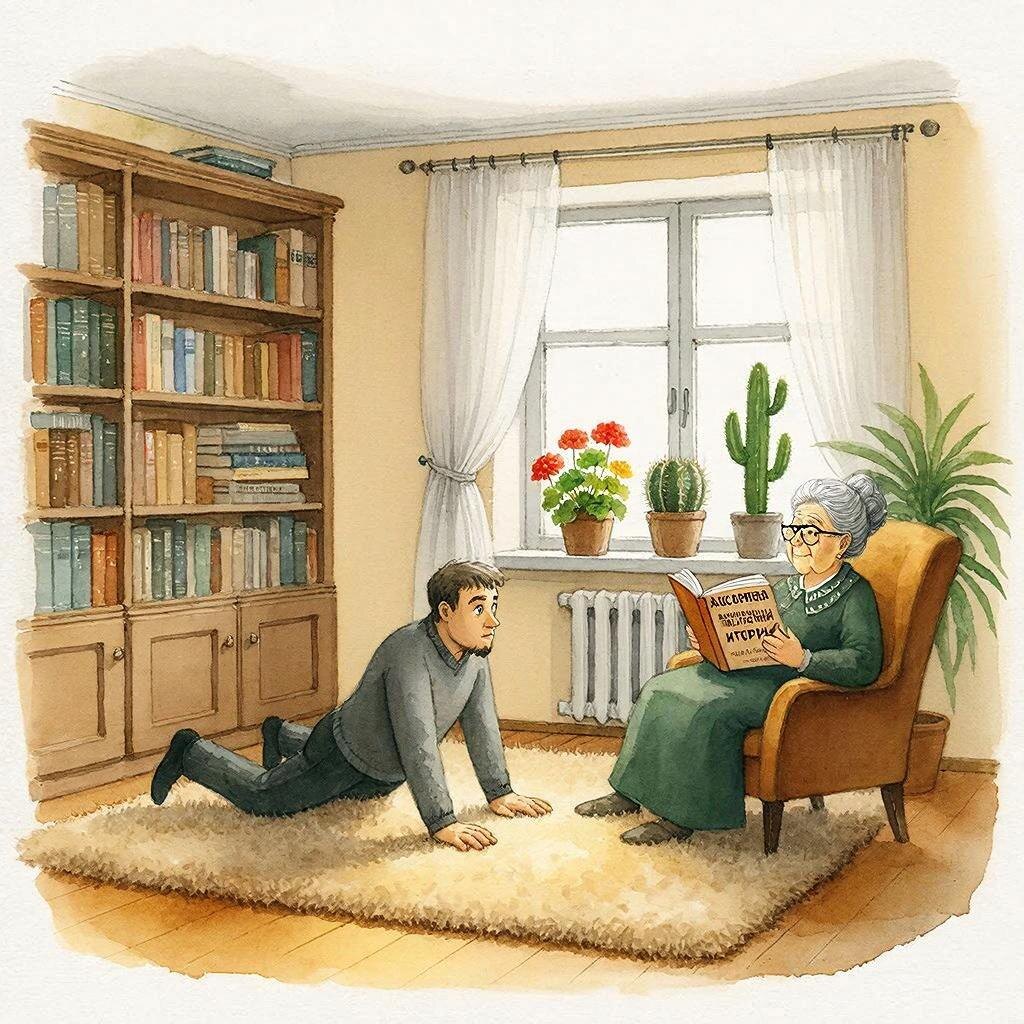 Ей было около семидесяти лет. Седые волосы собраны в аккуратный пучок, на носу — тонкие очки, на коленях лежит раскрытая книга. Она посмотрела на меня без страха и особого удивления. В её взгляде читался спокойный интерес, как если бы она увидела необычную птицу, залетевшую в комнату.