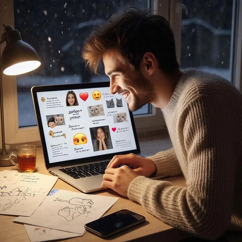 Максим и Катя познакомились в одной из популярных соцсетей — случайно, как это обычно и бывает. Он лайкнул её комментарий про котиков в шляпах, она ответила смайликом с сердечками вместо глаз — и понеслось. Роман развивался стремительно, но исключительно в цифровом пространстве. И знаете что? Их это более чем устраивало.