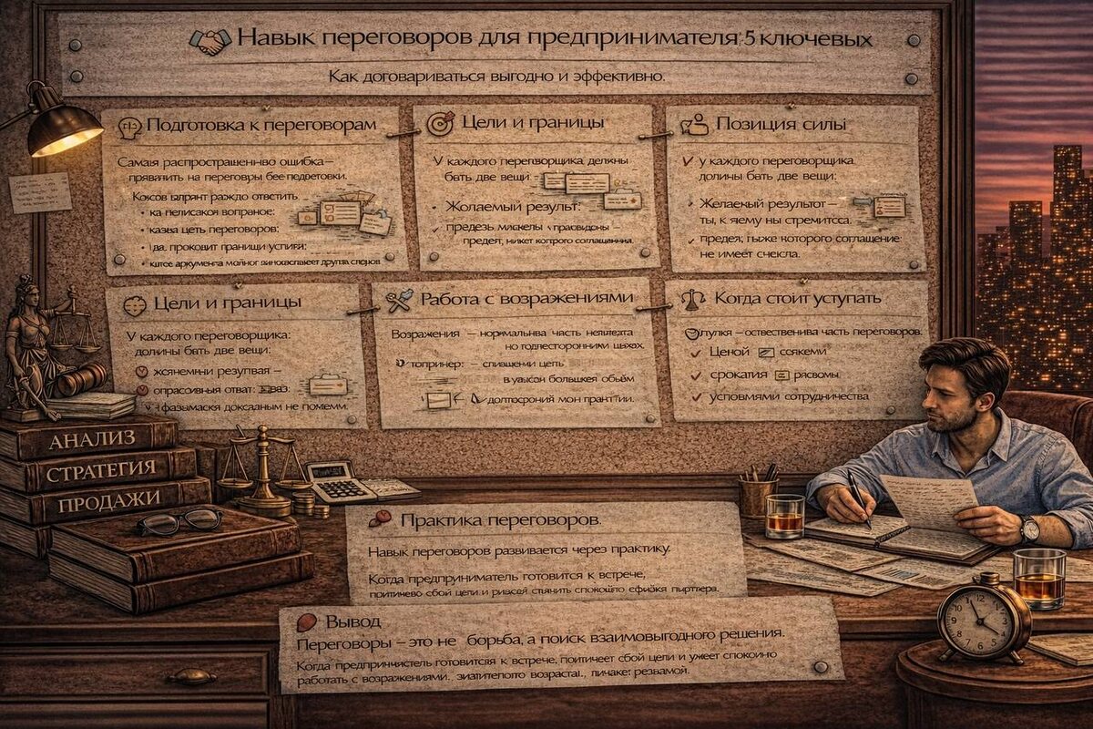 π€ ΠΠ°Π²ΡΠΊ ΠΏΠ΅ΡΠ΅Π³ΠΎΠ²ΠΎΡΠΎΠ² Π΄Π»Ρ ΠΏΡΠ΅Π΄ΠΏΡΠΈΠ½ΠΈΠΌΠ°ΡΠ΅Π»Ρ: 5 ΠΊΠ»ΡΡΠ΅Π²ΡΡ ΠΏΡΠΈΠ½ΡΠΈΠΏΠΎΠ²