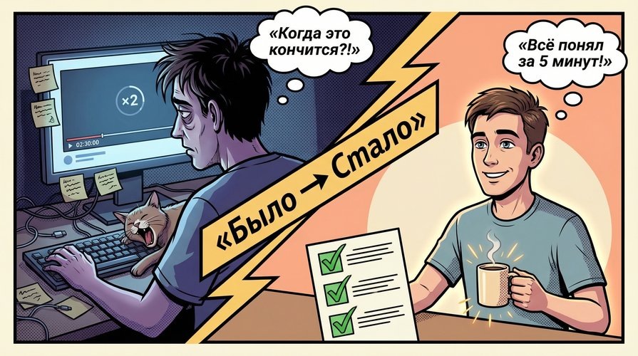 Нейро-саммаризаторы — это не замена просмотру видео, а умный фильтр, который помогает: