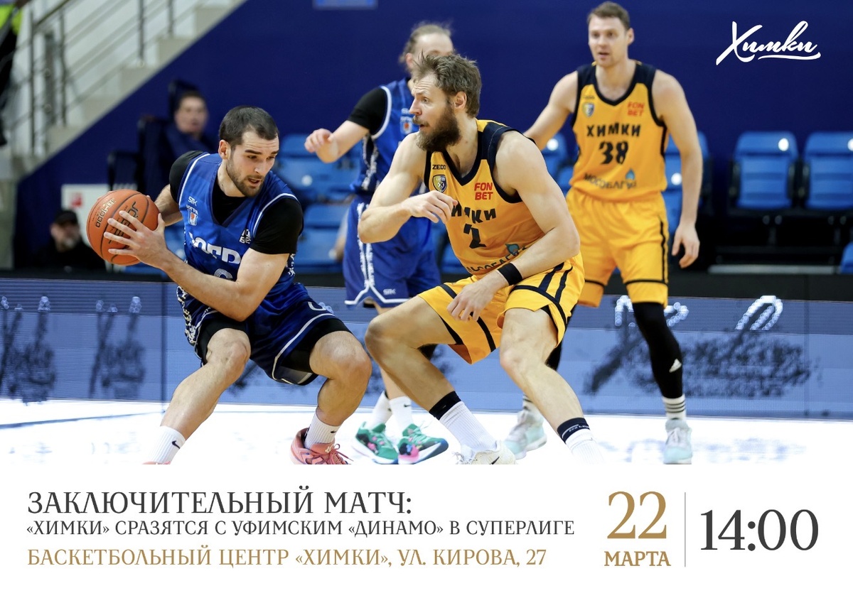 Баскетбольный клуб «Химки» приглашает на заключительный матч регулярного сезона! Уже в это воскресенье химчане сразятся с «Динамо» из Уфы на домашней площадке.