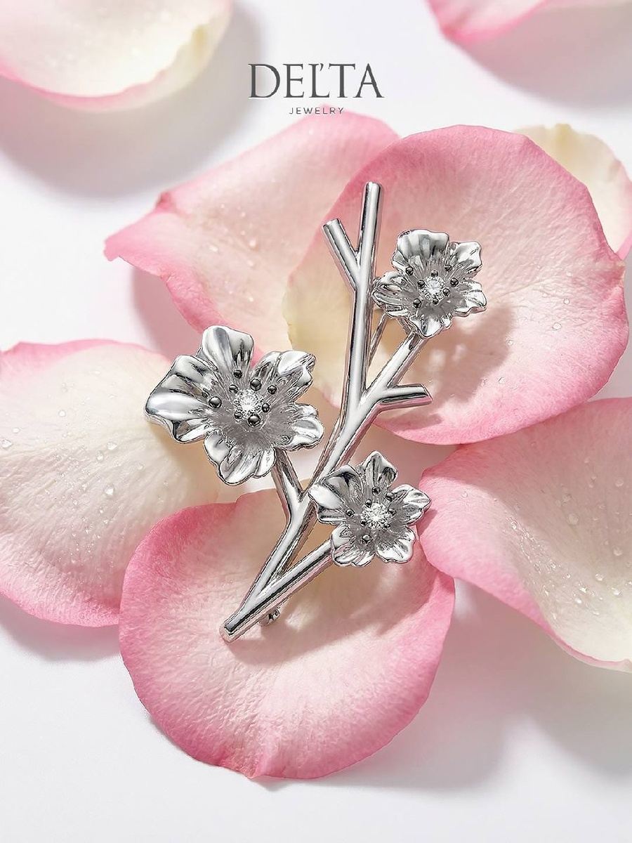 Тычинки с графитовыми кончиками из черного родия добавляют характера этой нежной композиции. На розовых лепестках или на лацкане пальто — она везде будет к месту. Добавьте флористику в свой образ с DELTA. ____ DELTA - создай свой стиль Брошь арт. с061051 #DELTA #БрошьЦветок #Серебро #ВесеннийОбраз #ЮвелирноеИскусство