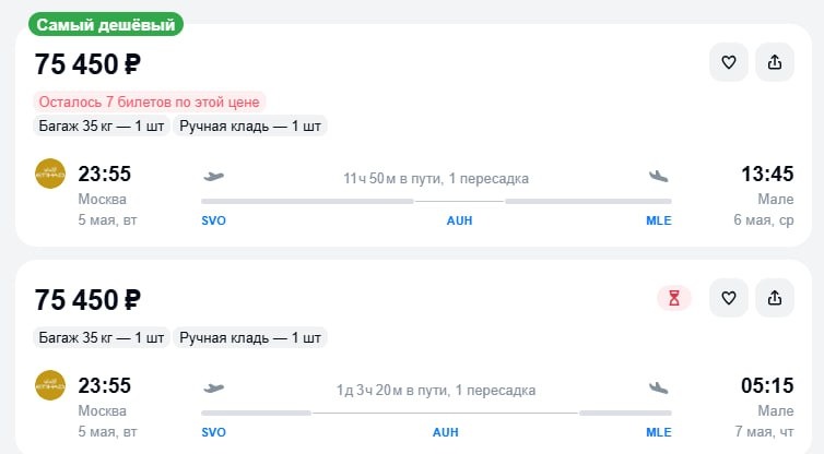 смягчают условия перевозки. Например, как заметил @ranarod, в апреле и мае можно найти билеты Москва – Мале от 75,5 тыс. руб. в одну сторону и около 126 тыс. руб. туда-обратно, Москва – Бангкок – от 100 тыс. руб. в одну сторону. Для премиального сегмента это нетипично дешево. Кроме того, ближневосточные авиакомпании изменили в пользу пассажиров программы лояльности: Emirates заморозила сгорание статусов и миль, а Qatar Airways продлила сроки действия привилегий. Подробнее написали на ТурДоме. @tourdom