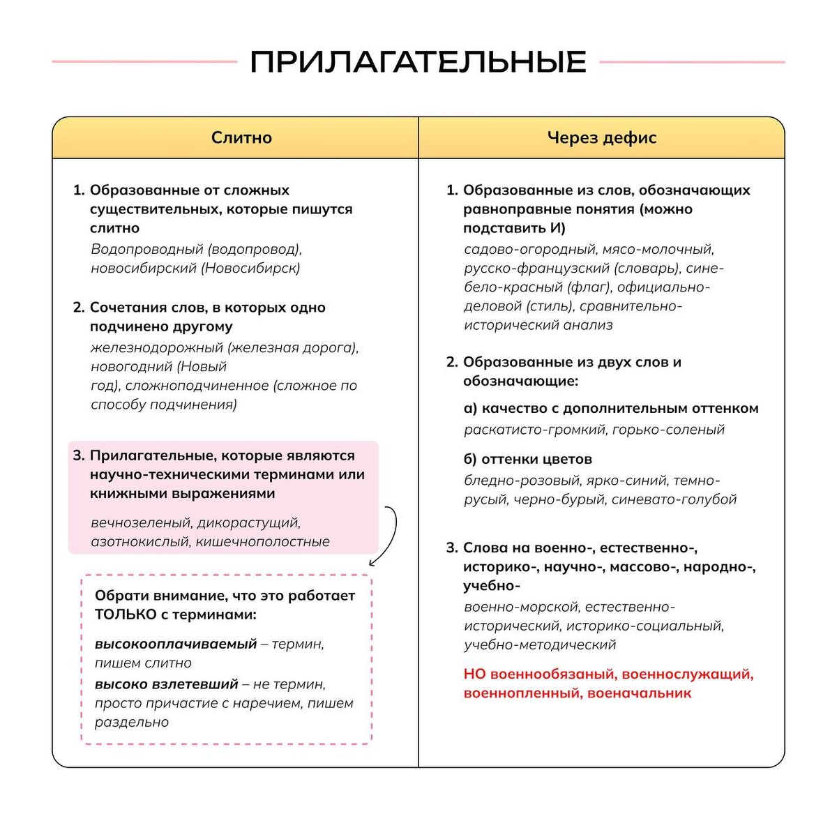 Сохраняй таблицу со слитным и дефисным написанием прилагательных для задания №14 ✨