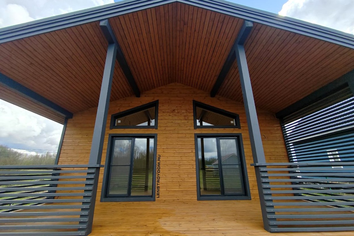 Одноэтажный каркасный дом по проекту «Раговицы», был построен компанией ЛенСтройДом в ДНП «Сказка», Ломоносовский район