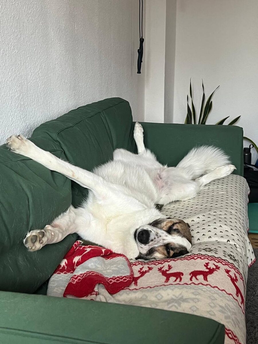 ♥️ Нам кажется, что она счастлива. Помните ее историю: в Воркуту привезли из Инты, потом семья выкинула, потом какое-то время кто-то из родственников платил за передержку, потом перестали платить и Соню сдали в отлов (или должны были, уже и не упомню), потом мы привезли ее в приют, потом передержка Москве, потом в Германии. Ну а потом уже Соня обрела свой дом) И все это время Марина была на связи, курировала ее, была ее ангелом-хранителем)