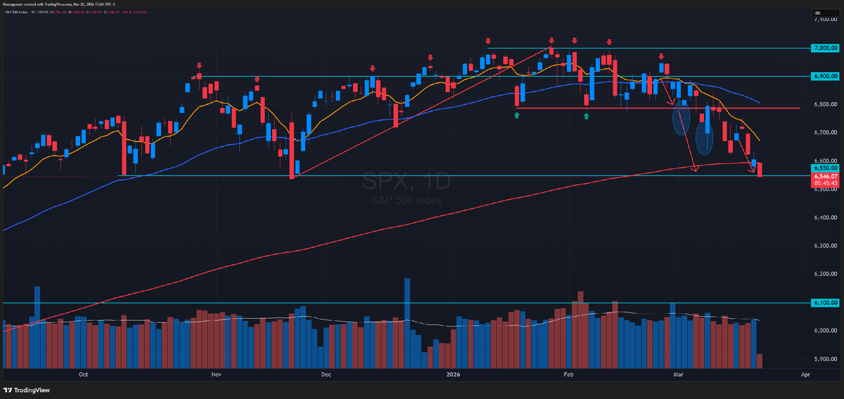 После решения ФРС и резкого скачка нефти выше $110, основные индексы демонстрируют глубокое падение. Джером Пауэлл признал, что война с Ираном усилит инфляцию в краткосрочной перспективе. Он намекнул, что регулятор может действовать осторожнее со снижением ставок из-за «двусторонних рисков» - инфляции и охлаждения рынка труда. На неделе ещё вышли значительно выше прогнозов PPI — это «опережающий» индикатор. Рост цен у производителей (сырье, энергия, логистика) неизбежно перекладывается на потребителей через 1–2 месяца. Это означает, что инфляция в США не замедляется, а получает новый импульс. А март будет ещё хуже, вот и будет обвал рынка США. Brent закрепляется выше отметки $100 на фоне ударов по энергетической инфраструктуре в Персидском заливе. Это усиливает страхи перед глобальной рецессией. Падение цветных металлов - это классический сигнал «Risk-Off». Падение металлов и золота одновременно с акциями часто означает, что крупные фонды распродают всё подряд, чтобы покрыть маржин-кол