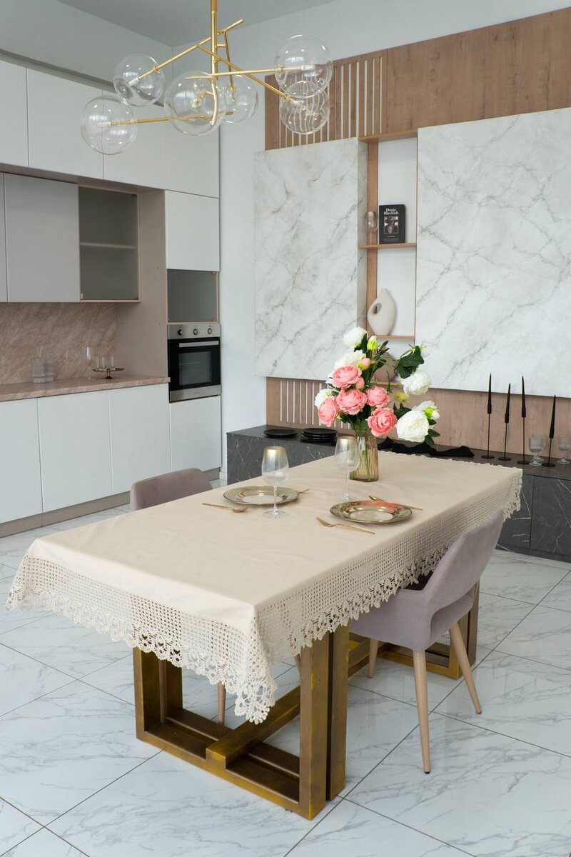 «Ажурная скатерть дарит дому особенную атмосферу тепла. И правда, стоит только застелить стол — и комната оживает.»
