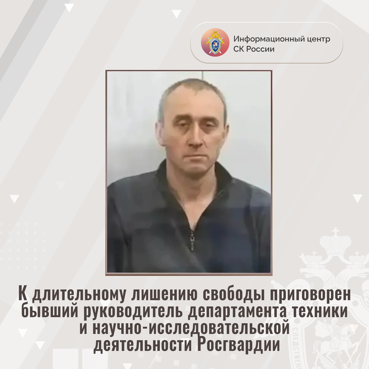 К длительному лишению свободы приговорен бывший руководитель департамента техники и научно-исследовательской деятельности Росгвардии