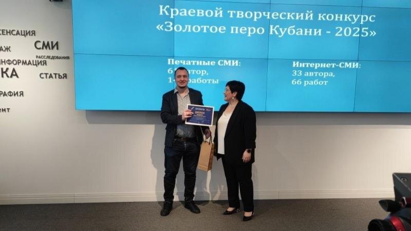 20 марта 2026 года в краснодарском Доме журналистики состоялось торжественное награждение победителей и лауреатов четырёх творческих конкурсов Союза журналистов Краснодарского края: «Золотое перо», «Золотой микрофон», «Золотой объектив» и «Золотой объектив: режиссёрская работа».