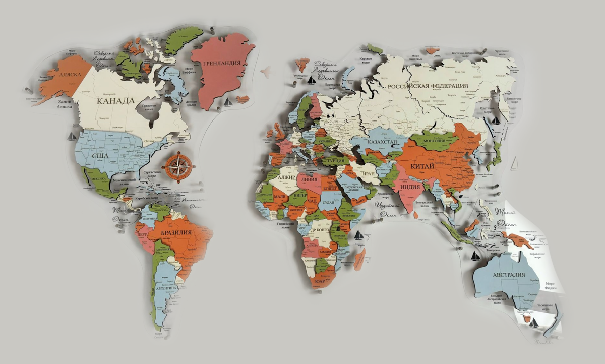 Мы редко задумываемся, но цвет в интерьере работает постоянно. Даже когда мы не смотрим на стену, периферийное зрение улавливает оттенки, мозг их обрабатывает, и где-то глубоко внутри рождается ощущение - комфортно нам в этой комнате или тревожно, хочется работать или расслабляться, задерживаться или уходить. Карта на стене - не просто географический объект, а крупное цветовое пятно, которое задаёт настроение всему пространству. И выбор её цвета - это не только вопрос стиля, но и вопрос вашего внутреннего состояния. Тихая сила натурального дерева Начнём с тех, кто выбирает карты в природных оттенках - берёзовый шпон, благородная пробка, тёплые медовые тона. Эти люди, скорее всего, ценят стабильность, естественность и не любят суету. Натуральные оттенки дерева действуют успокаивающе, они словно заземляют пространство, наполняют его ощущением надёжности и уюта. Психологи говорят, что тяга к природным цветам часто возникает у тех, кто ищет опору в меняющемся мире. Такая карта будет идеал
