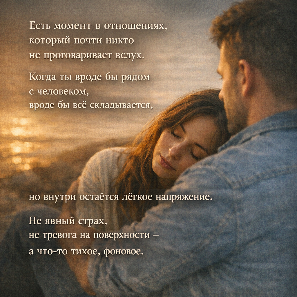 Когда ты вроде бы рядом с человеком, вроде бы всё складывается, но внутри остаётся лёгкое напряжение. Не явный страх, не тревога на поверхности — а что-то тихое, фоновое.