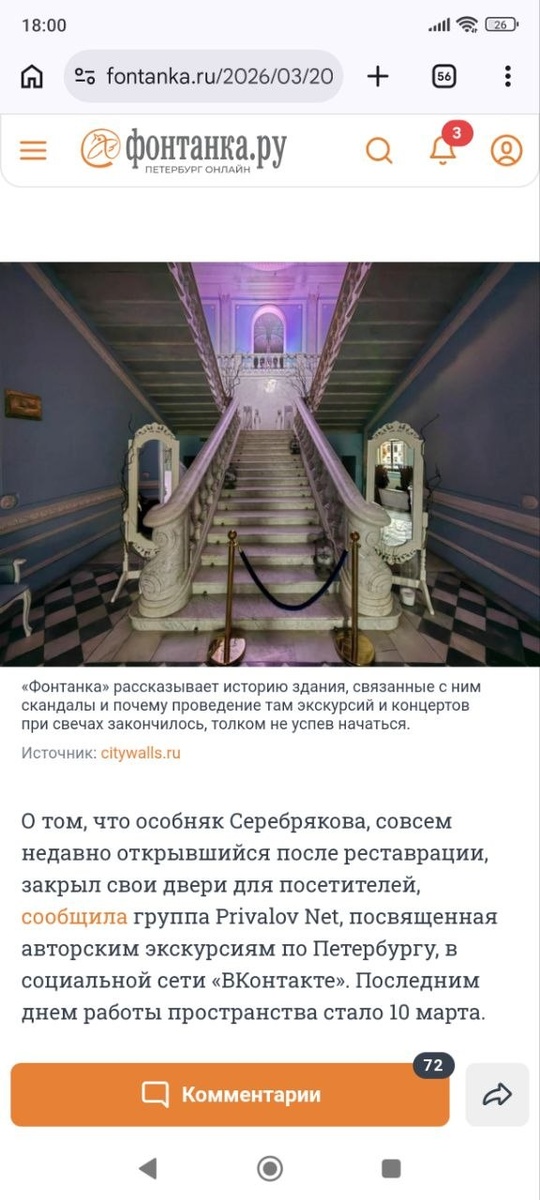 Говора, выставлен на продажу. За него хотят выручить 290 млн рублей. Читать далее: https://www.fontanka.ru/2026/03/20/76320300/ @fontanka.ru спасибо за упоминание
