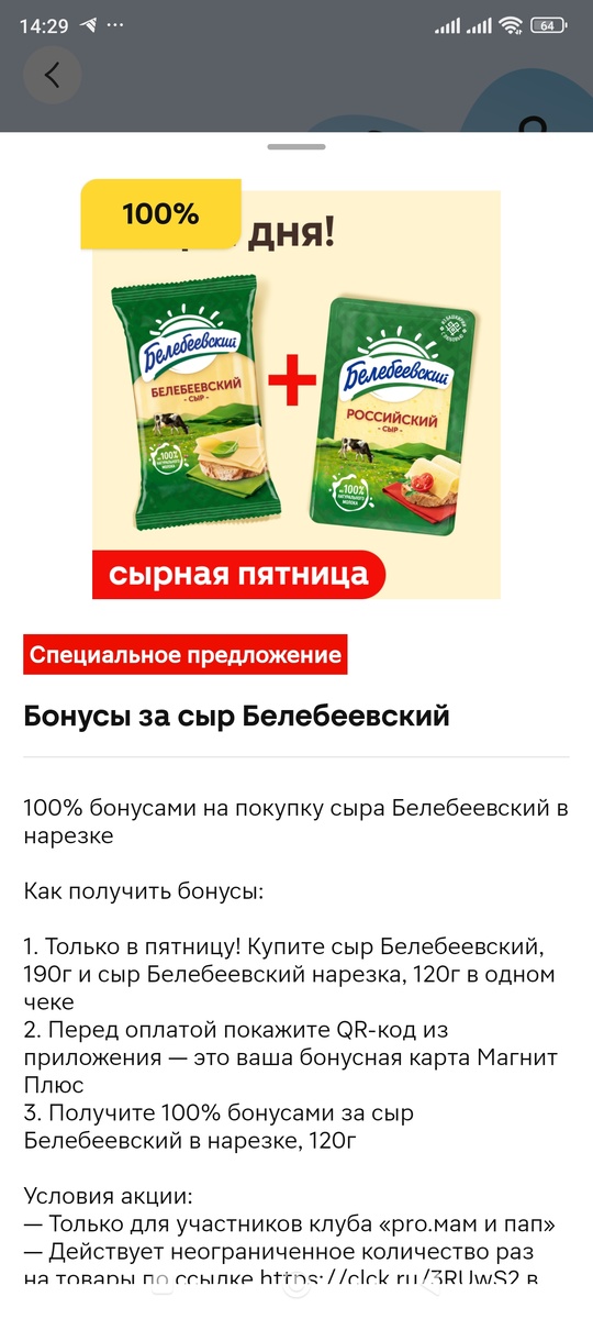 Вот для чего производители проводят эти акции? Чтобы люди попробовали, запустился "вирусный" эффект: люди рассказали в соцсетях, друзьям, сами в следующий раз купили, т к знают: мне/семье понравилось. И становятся постоянными покупателями. У меня многие товары после подобных акций "прижились" дома. Сейчас мы, например, тестируем протеиновые батончики, купленные по хорошей цене. Уже есть понимание, что будем брать ещё. А тут, получается, партнёр в лице Магнита подводит. Я специально посмотрела подходят ли магазины под акцию (там есть приписки по типу: "в магазинах Магнит у дома"). И ещё в условиях есть, что действует неограниченное количество раз. Т е производители сыра сразу предполагают и соглашаются, что 1 человек может взять более 1 раза в 1 руки. Но магазин нам не продаст сыр. А зачем? 😄😄