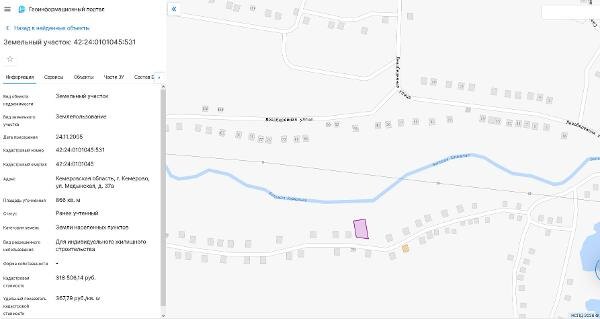 Название: Земельный участок, пл.866 кв.м, кадастровый №42:24:0101045:531, разрешенное использование: для индивидуального жилищного