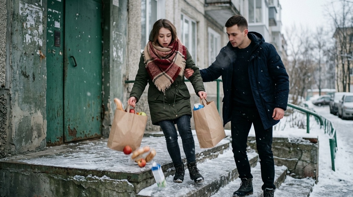 Снег сёк лицо. Ручки пакетов врезались в замёрзшие пальцы даже через перчатки. Я подошла к своему подъезду, стряхнула снег с сапог и потянулась за магнитным ключом.