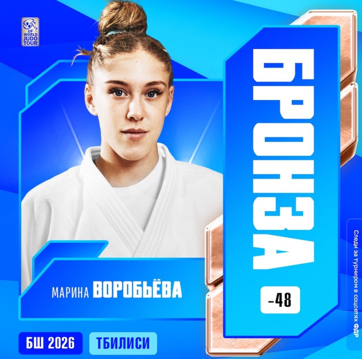 В Тбилиси стартовал этап Мировой серии по дзюдо «Большой шлем». В первый день соревнований бронзовую медаль в весовой категории до 48 килограммов завоевала рязанская дзюдоистка Марина Воробьёва. Начала турнир Воробьёва с победы над представительницей Узбекистана Хакимовой. В четвертьфинале рязанка уступила одну оценку «юко» своей соотечественнице Сабине Гилязовой. А в поединке за третье место она выиграла у представительницы Бельгии Сары Ишт. Поздравляем Марину Воробьёву с завоёванной наградой турнира Мировой серии! 0+