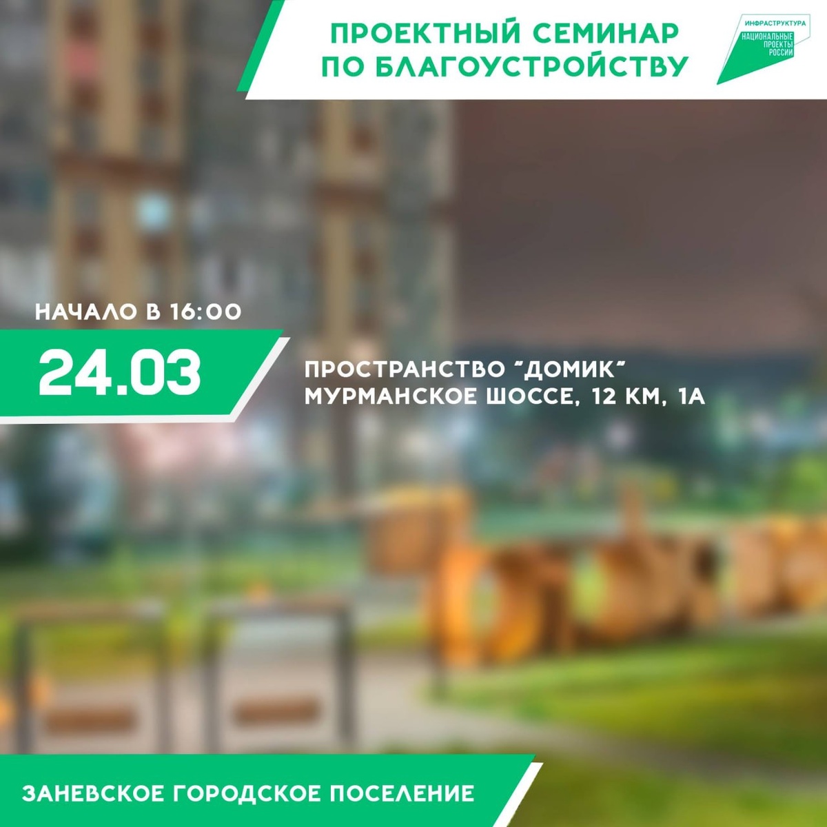 Администрация Заневского городского поселения организует сессию соучастного проектирования для жителей. Мероприятие пройдет 24 марта в общественном пространстве «Домик». Начало в 16:00. В ходе встречи эксперты и граждане рассмотрят возможности развития территории, проанализируют сценарии её текущего и перспективного использования, а также соберут предложения от населения. Напомним, что по результатам всероссийского голосования, завершившегося в феврале, наибольшее количество голосов в Кудрово набрала территория, вдоль улицы Центральной, за помещением по ул. Ленинградская, 4В, в парке «Оккервиль». Ее планируется благоустроить в рамках федеральной программы «Инфраструктура для жизни» в 2027 году. Пресс-служба Заневки 🌇 Жизнь в Кудрово ( ВК | Max ) Есть новости? Пишите сюда.