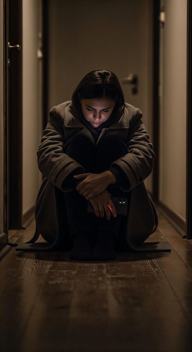 Дома Кирилл нашёл её сидящей на полу в прихожей — она не дошла до комнаты, просто опустилась там, где стояла, прямо в пальто.