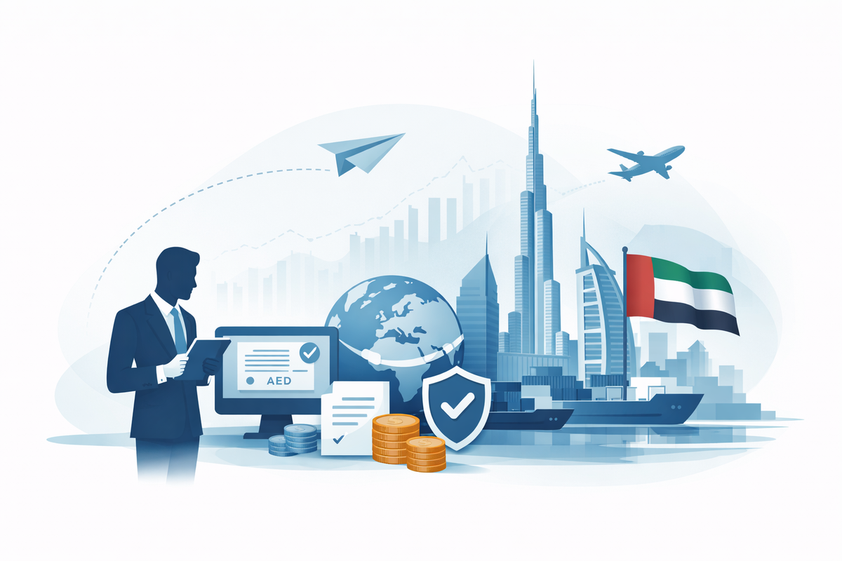 В-третьих, компании все чаще работают с расчетами в разных валютах — AED, USD, EUR — и ОАЭ позволяют выстраивать такие схемы более удобно.