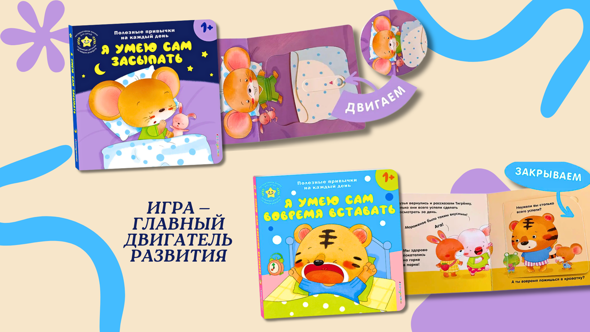 Серия книг-игрушек «Веселые деньки. Книги-игрушки о полезных привычках для малышей» — это сборник из 10 интерактивных историй, которые помогут вашему малышу освоить ключевые навыки. Вместо нравоучений — яркие картинки, подвижные детали и сюжеты, с которыми ребенок ассоциирует себя.