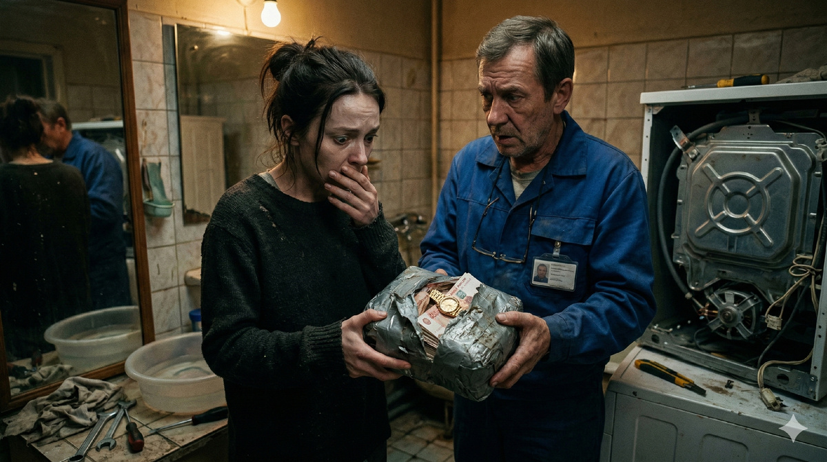 Минут через сорок на кухню заглянул Валерий Сергеевич. «Готово, хозяйка. Там посторонний предмет попал в патрубок слива, монетка десятирублевая встала ребром, вот помпа и не справлялась, гудела. Я всё прочистил, проверил, машинка работает как швейцарские...» он осекся, поняв, какую неудачную метафору подобрал. «В общем, работает отлично. Принимайте работу». Я молча встала, достала кошелек и расплатилась, накинув сверху приличную сумму сверху за беспокойство и, негласно, за молчание. «Спасибо вам, Валерий Сергеевич. Вы даже не представляете, как много вы сегодня починили», — сказала я, глядя ему в глаза. Он грустно улыбнулся, кивнул и, собрав инструменты, тихо вышел из квартиры.