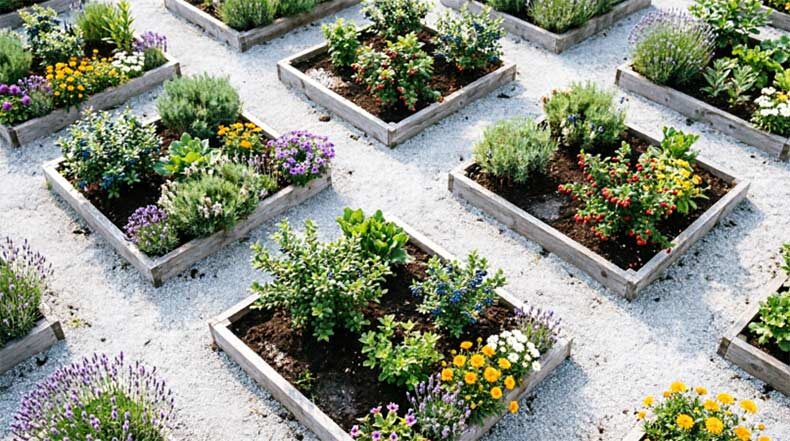 Съедобный ландшафт стирает грань между «красиво» и «вкусно». Это не просто грядки, а полноценный дизайн участка, где капуста заменяет декоративную листву, а смородина цветет в цветнике. Главный принцип: эстетика круглый год. Планируйте доступ к травам с кухни, а ягоды вписывайте в миксбордеры по принципу контраста листвы. Забудьте о черной земле на виду — используйте высокие короба и мульчу. Такой подход экономит место, сокращает путь за зеленью и делает сад живым. Ниже расскажу, как превратить огород в предмет гордости, без потери урожайности. Первая ошибка — пытаться спрятать огород. Вторая — оставить его просто грядкой. Декоративные грядки начинаются с обрамления. Голая земля между рядами моркови выглядит сиротливо. Поднимите посадки в короба из термодерева или габионы. Это сразу меняет статус: перед вами не «картошка», а архитектурный элемент. Играйте на контрастах. Посадите кочанный салат рядом с зеленым луком — фиолетовое кружево против строгих перьев. Мангольд с желтыми или кр
