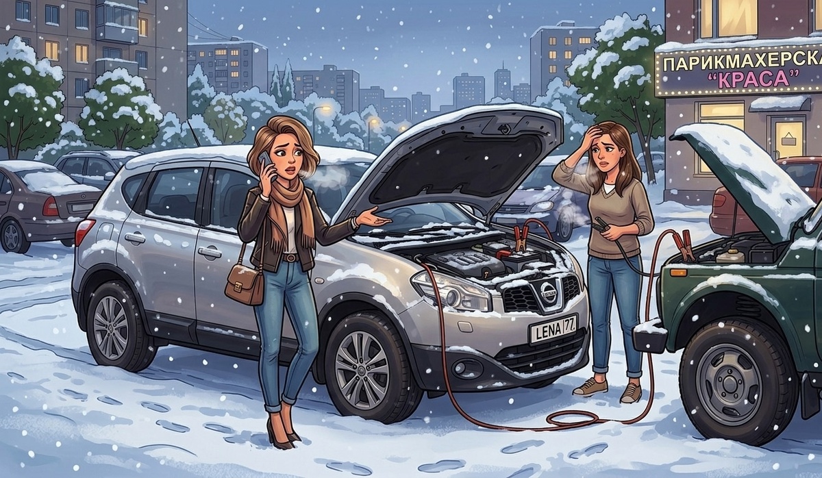Утро началось с классики: соседка Леночка — душа-человек и обладательница вечно сияющего «Ниссана» — застыла над открытым капотом с видом археолога, нашедшего пустую гробницу. Аккумулятор, естественно, приказал долго жить.
