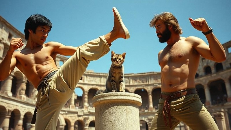 ➡️ Телеграм канал SvodkaPress Ах, золотая эпоха кинематографа, когда драки в фильмах выглядели как драки, а не как хаотичный монтаж с трясущейся камерой. Вспомним, как два титана — Брюс Ли и Чак Норрис — устроили на экране то, что позже назовут «культовой схваткой». И да, это был не просто бой, а целая философская притча с котёнком в главной роли. Потому что без котёнка — какой смысл? Брюс Ли, будучи не только мастером кунг-фу, но и гением пиара, позвал своего приятеля Чака Норриса на съёмки. Тот, наивный, спросил: «А кто победит?» Брюс, не моргнув глазом, ответил: «Я, конечно. Я же главный». Норрис, видимо, подумал: «Ну ладно, зато в титрах упомянут». И не прогадал — после этого фильма его карьера взлетела выше, чем удар ногой Брюса. Съёмки боя длились три дня. Три дня! Сегодня за это время снимают полфильма, но тогда каждый удар должен был быть идеальным. Или хотя бы не убить актёра. Норрису велели набрать вес и не брить грудь. Потому что в 70-х волосатая грудь = мужественность. С