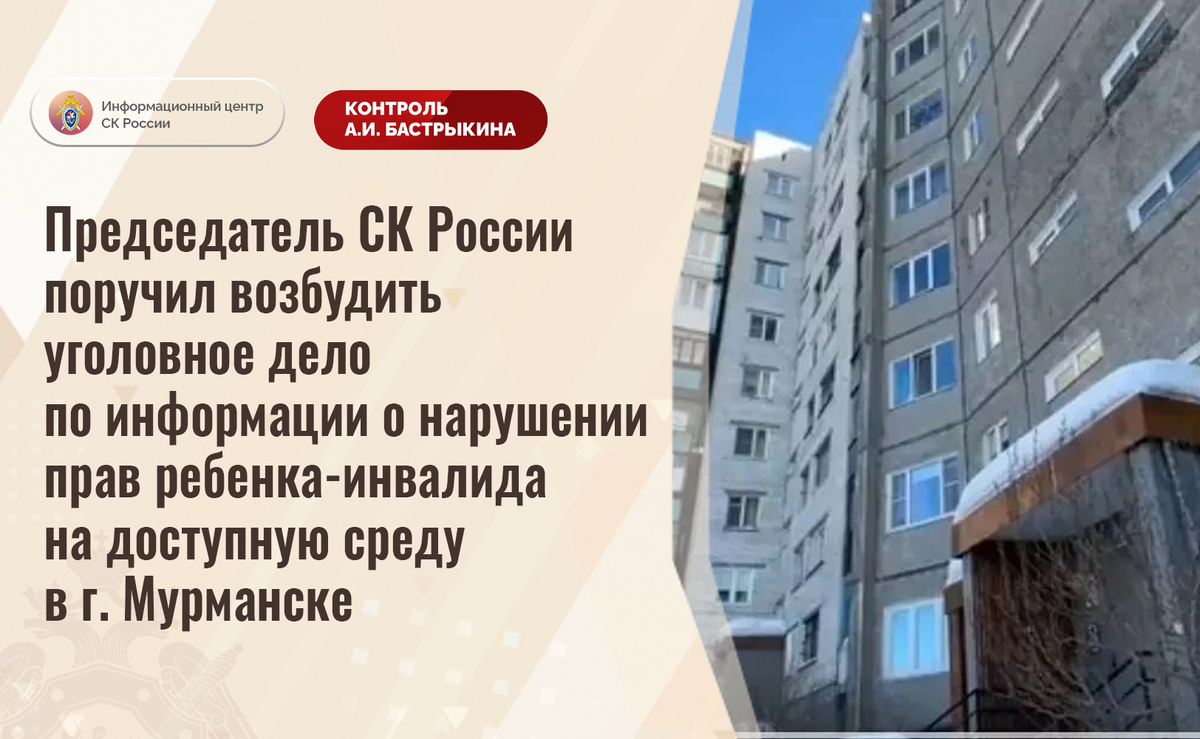 Председатель СК России поручил возбудить уголовное дело по информации о нарушении прав ребенка-инвалида на доступную среду в г. Мурманске