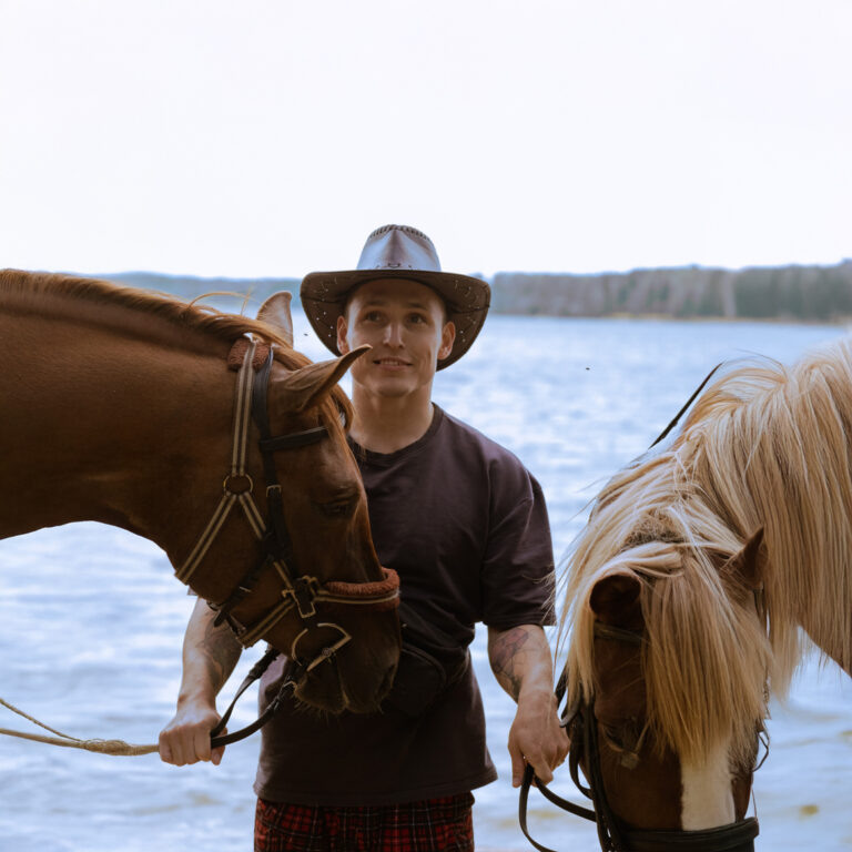 Конные походы появились в моей жизни несколько лет назад, во время учебы в актерской студии. Понятное дело, это уже как хобби, но именно актерская студия дала мне очень большой пул энергии на создание проекта «ЗаКонные выходные». В детстве я был сильно зажатым, закомплексованным и стеснительным ребенком — я заикался, не выговаривал четыре звука, мне в целом было сложно выстраивать коммуникацию. В студию «Сияние» я пришел просто на базовый курс, потом решился на повышенный уровень, и в итоге у меня была главная роль в большом спектакле «Ревизор» на сцене московского театра, мы его играли несколько раз, потом меня еще в другой театр позвали. Я думаю, именно актерская суть дала мне такой драйв, веру в себя, свободу проявления и компанию единомышленников, с которыми мы и начали делать конные походы.
