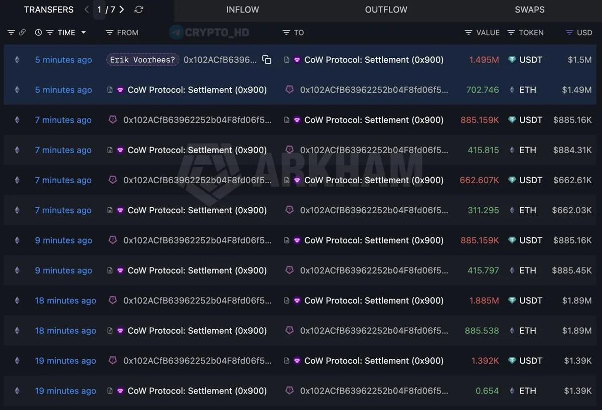Эрик Вурхиз, основатель ShapeShift и известный биткоин-максималист, увеличил позиции в Ethereum на $233,5 млн за 10 дней. Последняя сделка составила 6508 ETH по https://brokerlist.info/predprinimatel-erik-vurhiz-uvelichil-poziczii-v-ethereum-na-2335-mln-za-10-dnej/ #brokerlist #крипто