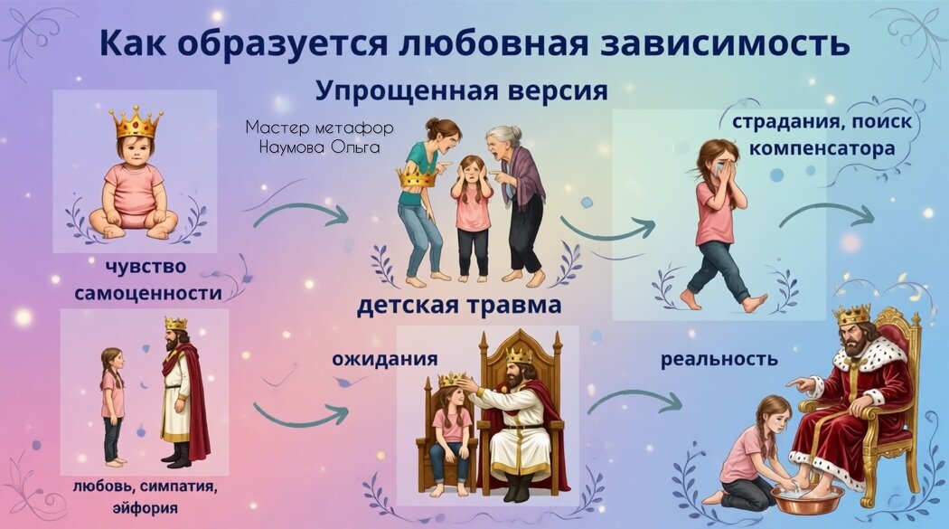 Наша психика постоянно находится в поиске недостающих ресурсов. Нас тянет к людям, у которых есть то, чего нет у нас, и это не обязательно деньги и власть. Это психоэмоциональные ресурсы, такие как уверенность, значимость, безопасность, лидерство, востребованность. Нашему мозгу кажется, если мы с этими людьми подружимся, то или часть ресурсов перетечет к нам, или нам позволят пользоваться чужими. Особенно это проявляется в межличностных отношениях. Слабые ищут сильных, бедные — состоятельных, бездомные — с жильем, больные — мамочек, желательно с медицинским образованием. "Дефицитные" люди нам кажутся значимыми, особенно , если в детстве нам не хватало внимания одного из родителей, мы переносим эту модель на других людей, и их любовь нами воспринимается как более ценная. Отдельная категория — это травмированные в прошлом люди, которые ищут других, которые способны, как им кажется, компенсировать их травму. Мир травм очень разнообразен, поэтому и выбор партнеров иногда очень странный, да