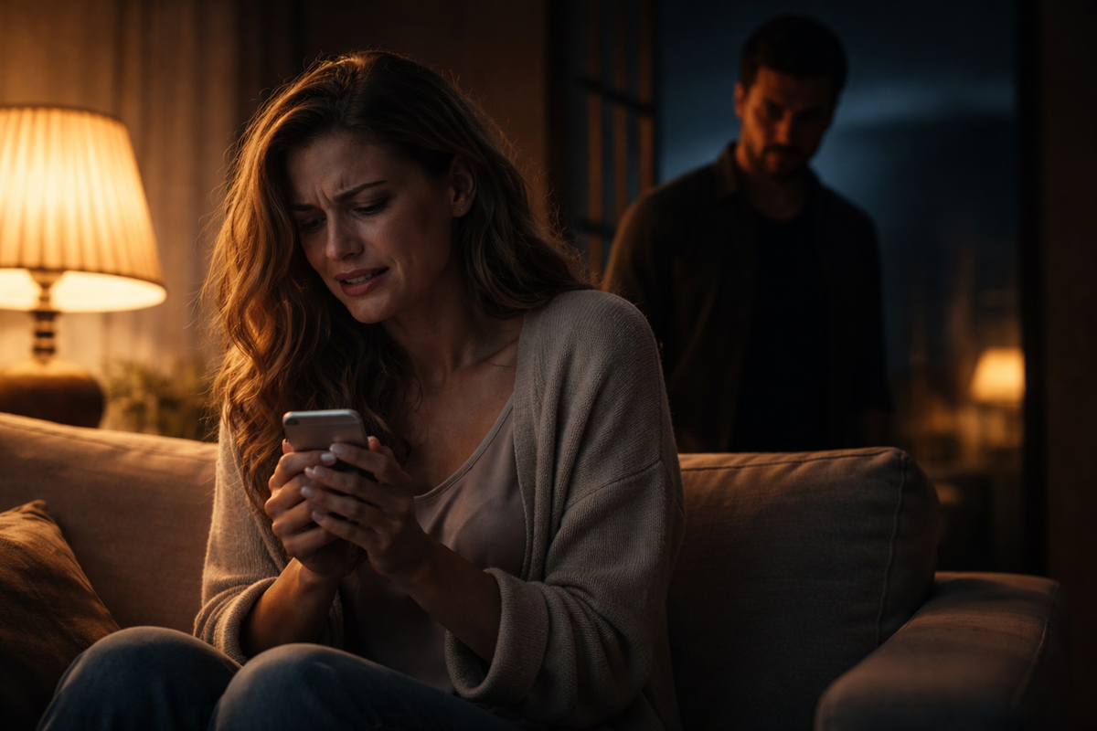 Она обернулась на его голос. Он сидел в кресле, в той части гостиной, куда почти не падал свет. В руках у него был её старый телефон — тот самый, с перепиской. Она застыла.