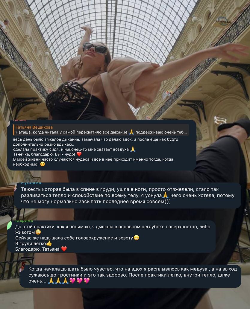 И сейчас там уже 200+ женщин. Я очень рада этому. Потому что я вижу: туда пришли не случайные люди. Туда пришли женщины, которым уже правда важно не просто читать про тело, а начать с ним работать. Не на марафоне силы воли, а по-настоящему и через контакт с собой. Через маленькие практики, которые можно делать в своей реальной жизни, а не в идеальном мире, где у тебя 3 свободных часа в день и никто не дергает. За эти две недели внутри уже накопилось много тепла, честности и очень живых откликов. Я приложу отзывы, чтобы ты сама почувствовала атмосферу этого пространства. И вот что я решила 👇 В ближайшие 48 часов я проведу внутри канала бесплатные текстовые консультации для тех, кто уже там. То есть ты сможешь написать свой вопрос: про свое состояние, про зажимы в теле, про тревогу, усталость, заморозку, про то, почему тебя “не отпускает”, и я дам тебе текстовый ответ внутри канала. Без доплат или отдельной покупки. У меня хорошее настроение и мне хочется дать вам больше живого к