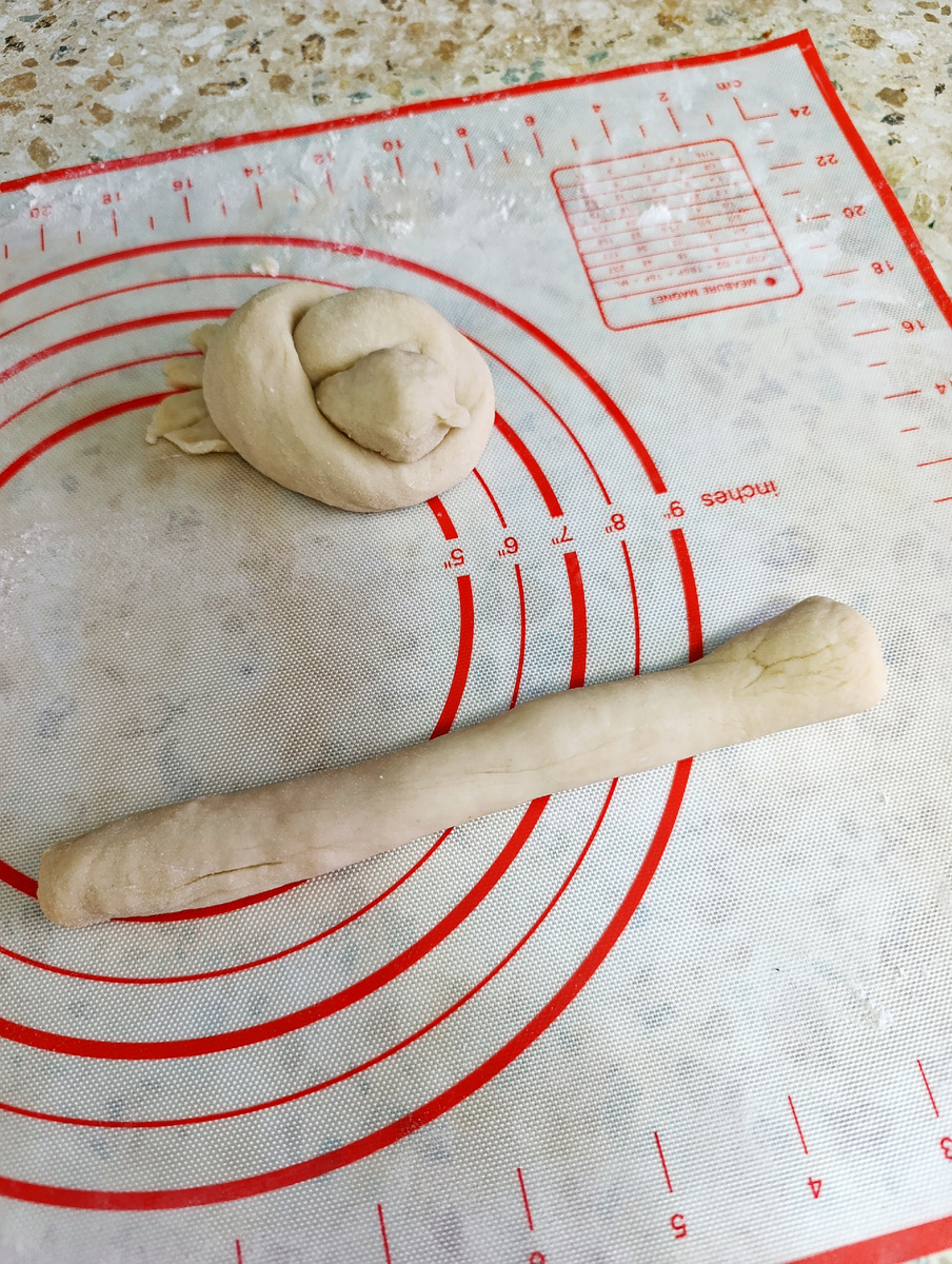 Нужно было вымесить тесто похожее на пластилин. Из кусочков нужно было раскатать жгуты с утолщенными концами - будущими головой и хвостом жаворонка.