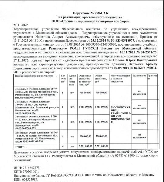, собств.: Вартанян Армен Рудикович, П. 758-САБ, цена: 859350,00руб. Канал: Госземля Московская область Область: обл Московская Район: м.о. Волоколамский Населенный пункт: д Становище Локация: Смотреть на карте ВРИ: Сельскохозяйственное использование Кадастровый номер: 50:23:0050309:274 Кадастровая стоимость: - Вид сделки: Продажа Площадь: 1000 м² Начальная цена: 859350.00 руб. Дата завершения: 20.04.2026 Подробнее: ГИС ТОРГИ #госземля #земляотгосударства #земля #земельныйучасток #земельныеторги #торги #аукцион #продажаземли #продажа #московскаяобласть