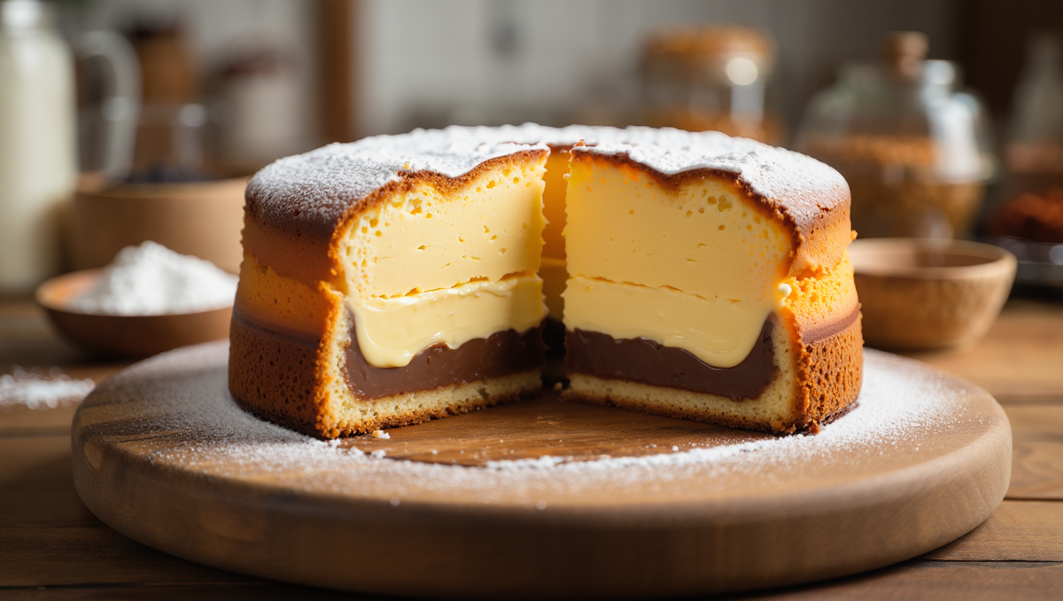 Представьте себе десерт, который нарушает все законы физики. Вы замешиваете абсолютно однородное, жидкое тесто, отправляете его в духовку, а через час достаете полноценный трехслойный торт. Сверху — пышный, облачный бисквит, в центре — тающий ванильный крем, а снизу — нежное, слегка плотное суфле. И всё это без раздельной выпечки коржей и долгого взбивания сложного крема.