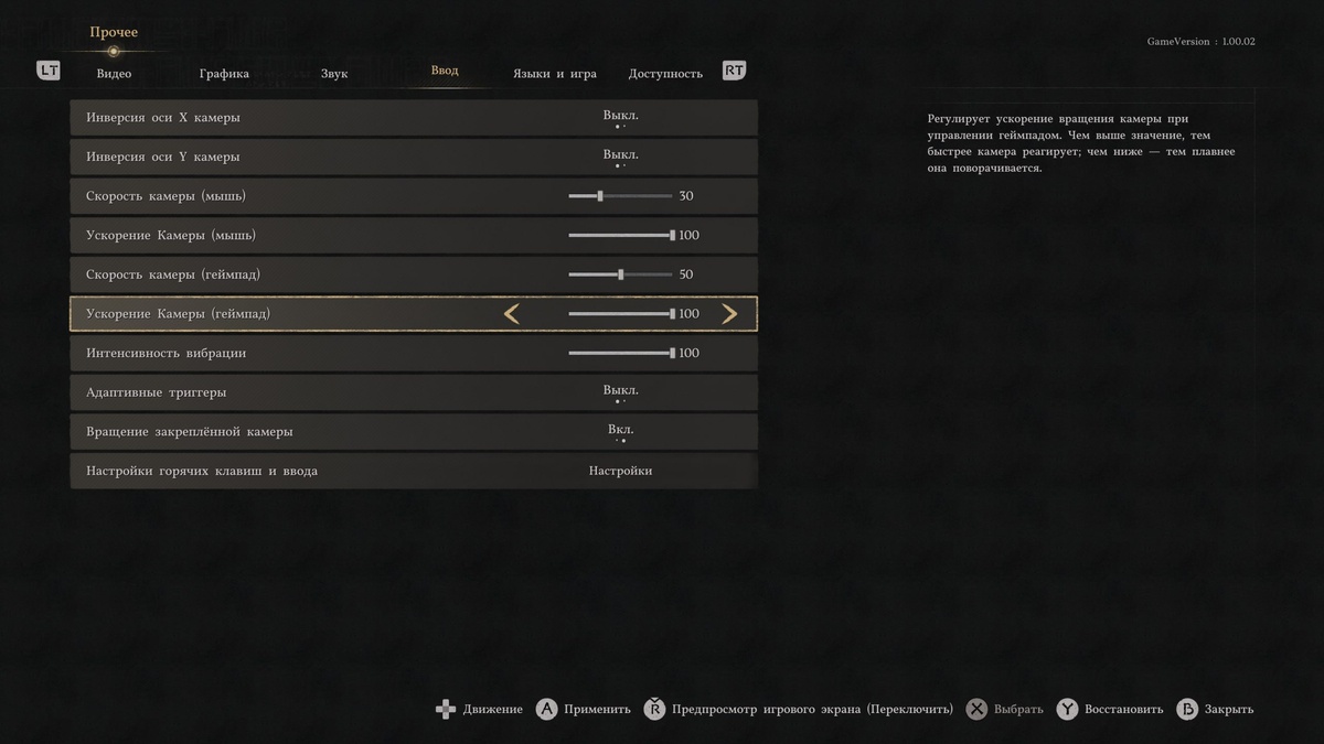 Ставьте ускорение камеры сразу на 100