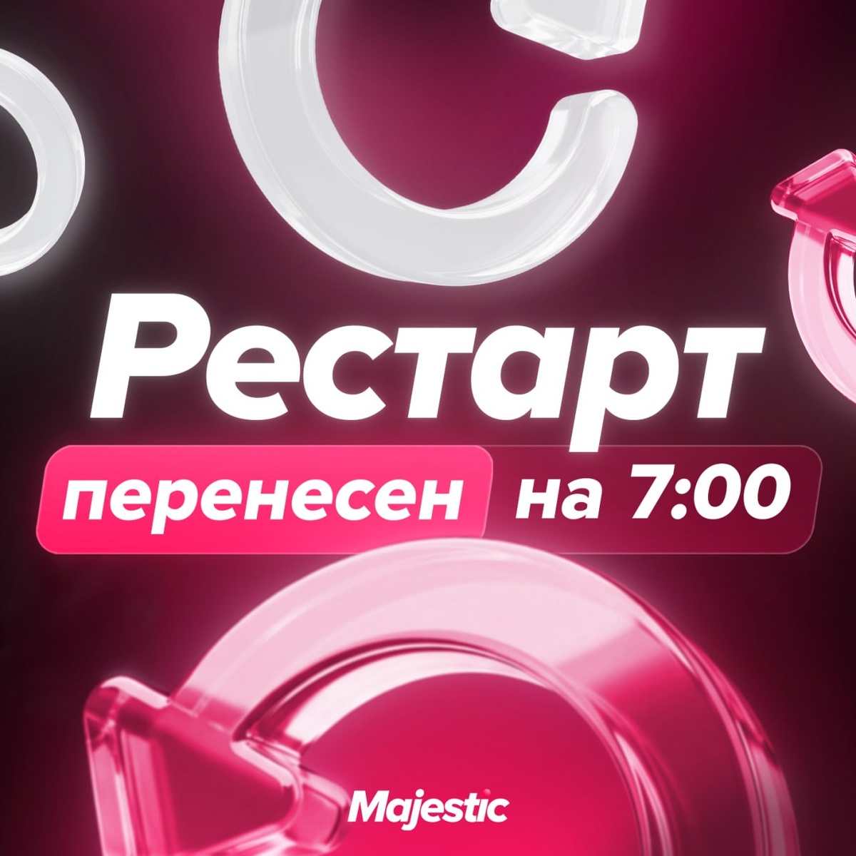Приятная новость для тех, кто любит поспать чуть дольше: раньше рестарт серверов происходил в 6:00, теперь он перенесен на 7:00 (МСК). 🫶 Благодарим за понимание и желаем, чтобы каждое утро на Majestic начиналось с хорошего настроения. ❤️ Majestic