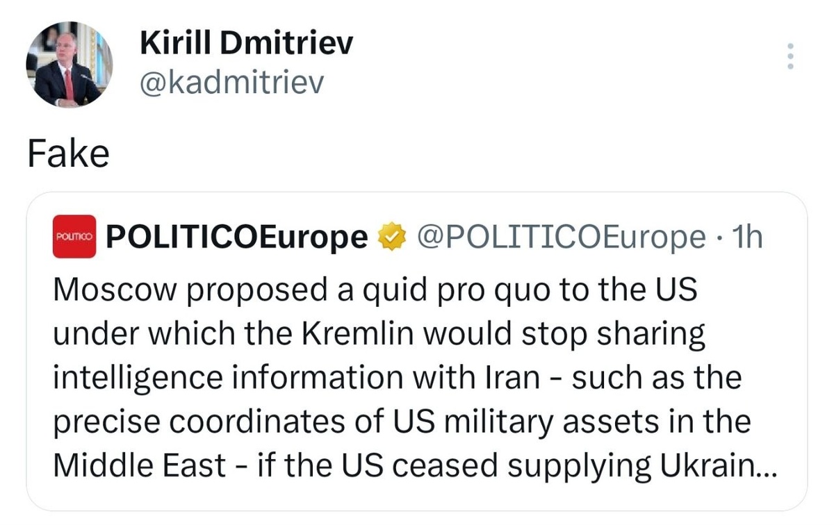 'FAKE' — Putin's special envoy Dmitriev DEBUNKS Politico for suggesting Russia proposed a 'quid pro quo'