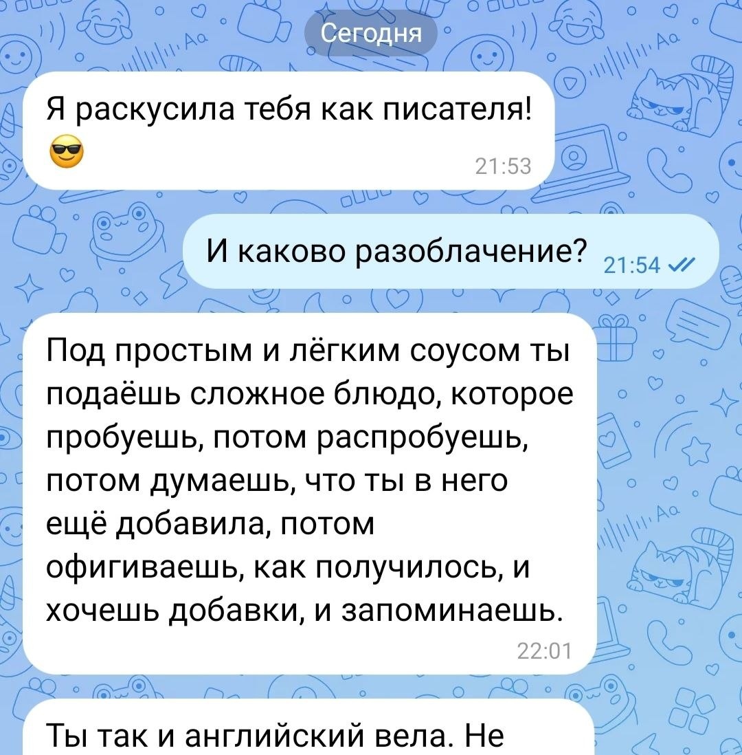 увлекла меня в бурное эмоциональное обсуждение моих книг )) Делюсь несколькими скринами и буду рада, если и вы поделитесь мнением или даже присоединитесь к нашей дискуссии в комментариях )) #мои_книги@anna_evdo30