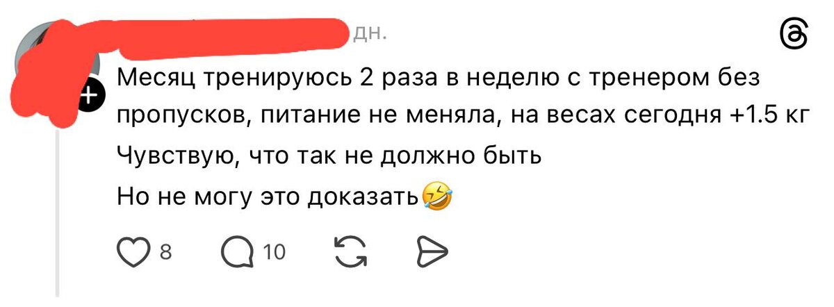 ? 🤔 Попалась очередная публикация, полная наивных заблуждений, которую так и хочется разобрать Уверен, у каждого тренера бывает клиент, который за первый же месяц хочет всё и сразу. И сегодня вы узнаете, как объяснить, что происходит с его телом на самом деле 1️⃣Что считать похудением? Несколько странно приходить за цифрой на весах. Но многие так делают, хотя: 💡вес — это мышцы, соединительная ткань, жидкость, скелет, органы, а не только жир 💡вес меняется в течение дня в пределах 1–1,5 кг. И это нормально Куда надёжнее использовать как ориентир: ✅обхваты ✅фото ✅самочувствие и производительность Вес — это очень шумный показатель 2️⃣Что происходит в первый месяц Мышцы, которые раньше особо ничего не делали, начинают требовать больше энергии. Во время тренировки берут они её из гликогена А теперь важный момент: 🫠1 г гликогена удерживает ~3 г воды То есть: • гликоген ↑ • вода в мышцах ↑ • вес ↑ И длится это 1–2 месяца, а в пересчёте на килограммы может дать +1–3 кг (иногда б