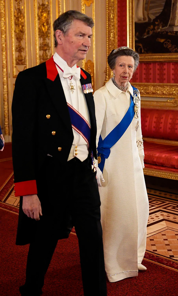 Принцесса Анна вновь напомнила, что устойчивый подход к гардеробу может выглядеть не менее эффектно, чем самые свежие подиумные новинки. На государственном банкете в Виндзорском замке, приуроченном к визиту президента Нигерии, 75-летняя королевская особа появилась в образе с историей длиной почти в шесть десятилетий. Для торжественного выхода принцесса выбрала кремовое платье-пальто, которое впервые надела еще в 1969 году — тогда, в возрасте 18 лет, она появилась в нём на премьере фильма «Беги свободно» в Лондоне. Спустя 57 лет вещь снова оказалась в центре внимания, но уже в обновлённой версии. Главное изменение коснулось воротника: если в 60-х он был округлым и лаконичным, то теперь приобрёл более современную форму с заострёнными линиями в стиле Питера Пэна. Этот небольшой апгрейд позволил сохранить винтажный характер вещи, но сделать её актуальной в сегодняшнем контексте. Принцесса Анна получает букет цветов на премьере фильма «Беги свободно, беги дико» в театре «Одеон» в Лондоне в