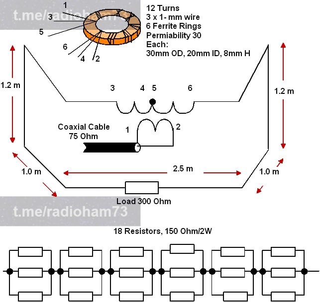 Антенна с нагруженной петлей, описанная в журнале ANTENTOP, выпуск 23, представляет собой практичную конструкцию антенны для радиолюбителей, имеющих ограниченное пространство, но желающих работать в КВ-диапазонах. Эта антенна использует простую проволочную петлю в сочетании с согласующим трансформатором и нагрузочным резистором, что позволяет небольшой по размерам петле вести себя как более крупная антенна. Петля обычно устанавливается вокруг балкона, оконной рамы или небольшой опорной конструкции. Поскольку длина петли короче полной длины волны, для согласования импеданса антенны со стандартной 50-омной коаксиальной линией питания используются нагрузочный резистор и ферритовый трансформатор. Такая конструкция позволяет антенне работать в нескольких КВ-диапазонах, сохраняя при этом приемлемый КСВ. Одним из преимуществ антенны с нагруженной петлей является ее компактный размер и простота установки, что делает ее идеальной для жителей квартир и портативных станций. Хотя некоторая мощнос