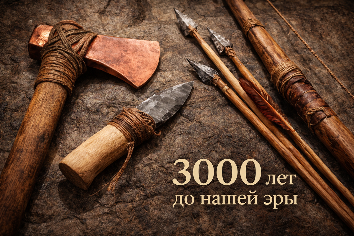 Переход от каменного к металлическому оружию произошёл не как революция, а как постепенное наслоение. Медь появилась в Западной Азии и Юго-Восточной Европе около 7000–5000 лет до нашей эры. Потом — бронза, сплав меди и олова: прочнее, тяжелее, лучше держит удар. Но каменные орудия не исчезли сразу: они использовались параллельно с металлическими ещё тысячелетия. Сам Этци с его медным топором и кремнёвым ножом — наглядная иллюстрация этого совмещения эпох.